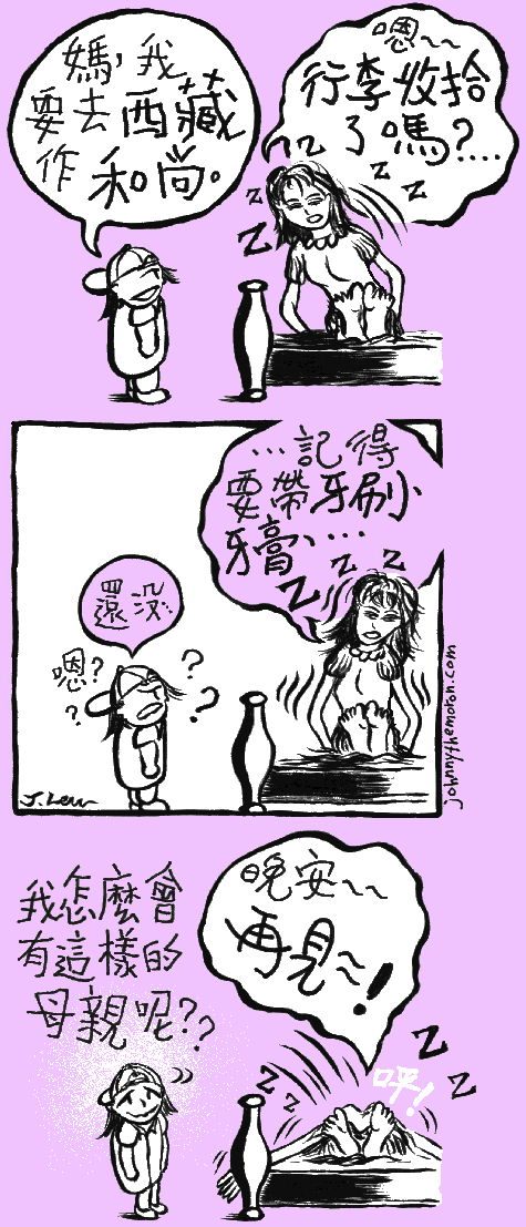 強尼遇到了一群有自戀狂的鹿、體驗了生命的故事、曾經拿起一些東西而最後學會了放下、也表達了他想去西藏作如尚的意願… 而母親的反應是…